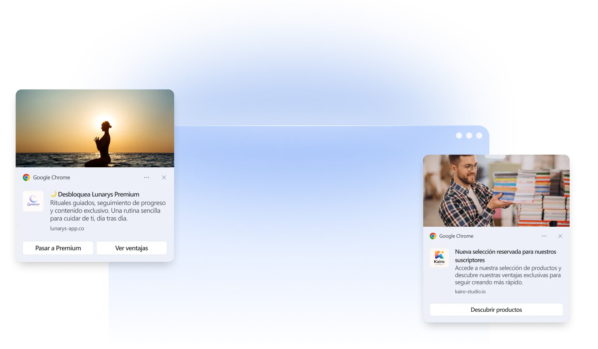 Convierte cada visita en una relación duradera con una audiencia de suscriptores de Web Push comprometidos y activables en cualquier momento.