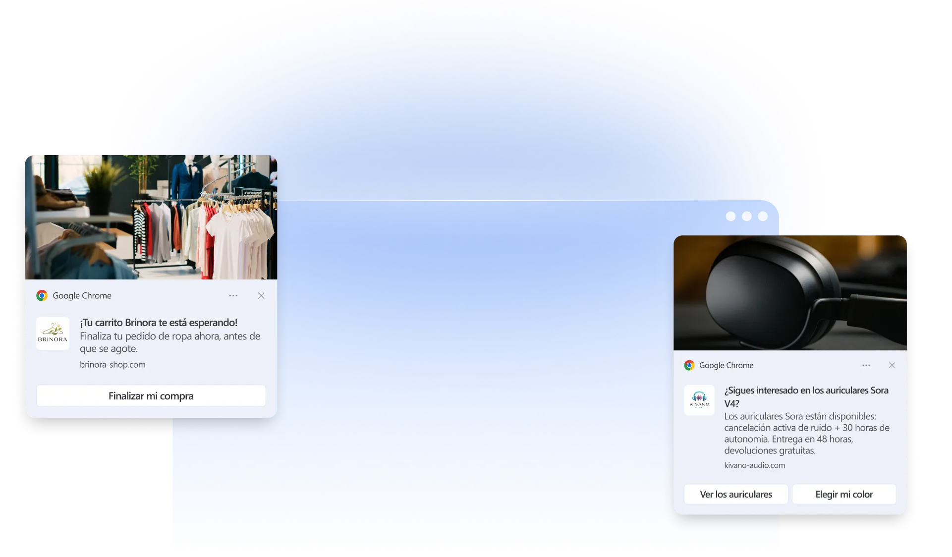 Gracias a nuestra tecnología patentada y a nuestra red de más de 60 millones de suscriptores, puede gestionar sus campañas Web Push de dos maneras: reorientando a sus propios suscriptores y reorientando a los usuarios no suscriptores después de que abandonen su sitio web.